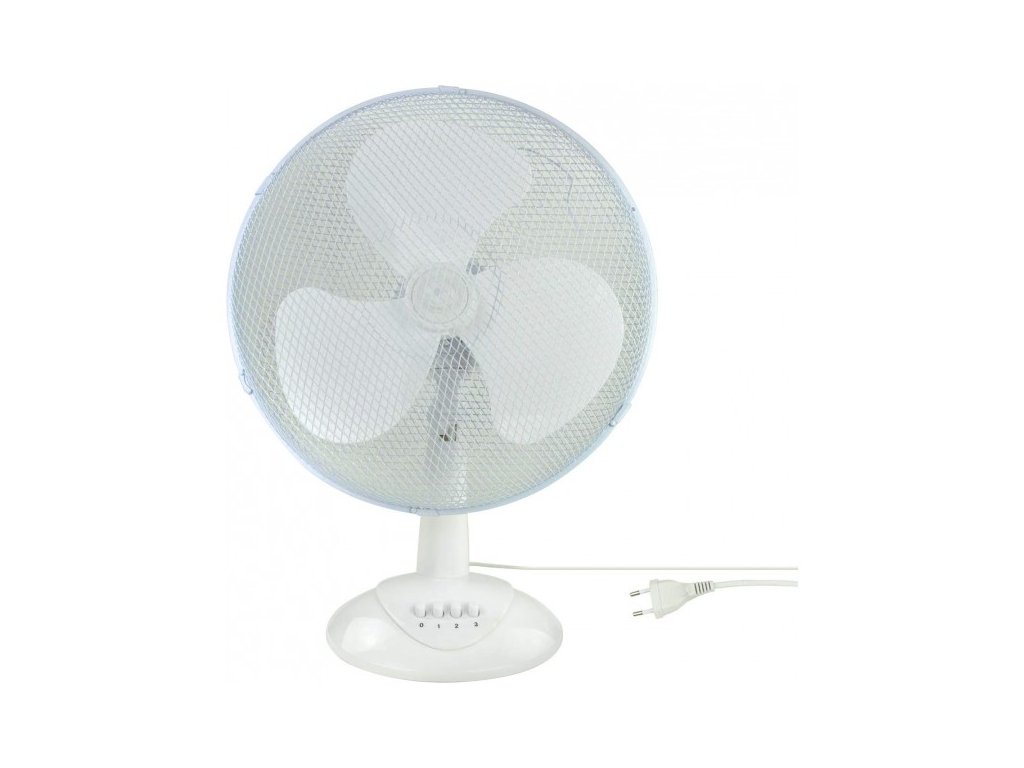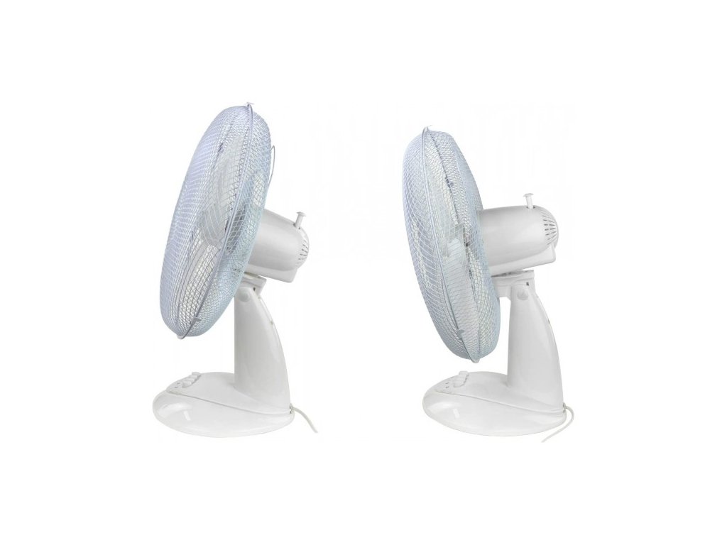 Stolový ventilátor so širokou základňou. Horizontálna oscilácia, nízka hlučnosť a pevný stojan. Sklon je individuálne nastaviteľný, tri rýchlostné stupne. Stolový ventilátor 34 cm 45 W
