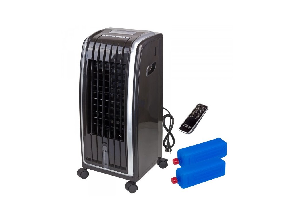 Ochladzovač vzduchu s tromi funkciami - 1. ventilátor má tri stupne a vytvára veľký závan čerstvého vzduchu, 2. chladenie: integrovaná nádržka na vodu sa môže naplniť vodou pre zvlhčenie vzduchu v zime alebo ľadovou vodou v lete pre aktívne ochladzovanie vzduchu, 3. čistiaca funkcia so vzduchovým filtrom. Ventilátor DAC 100 3v1 s diaľkovým ovládaním