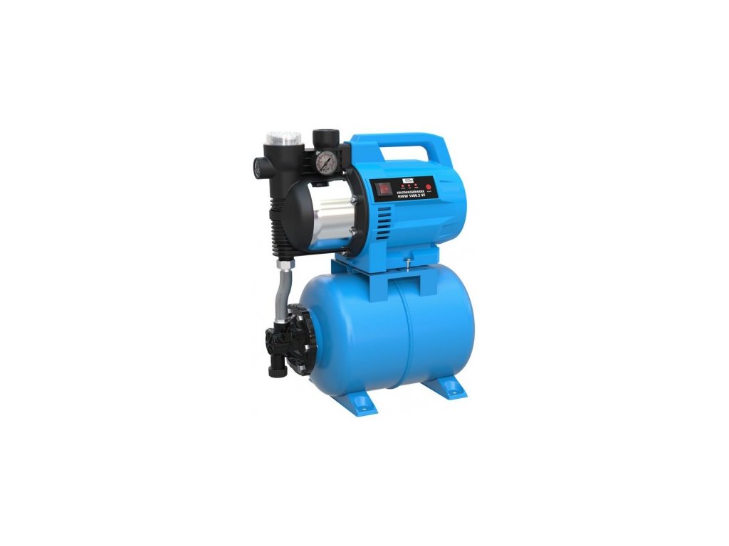 Domáca vodáreň s telesom čerpadla z plastu odolného voči nárazom, obežné koleso z norylu, mechanické tesnenie, vypúšťacia skrutka vody, zapínač/vypínač, tepelná ochrana a motorový istič, automatický tlakový spínač s ochranou proti chodu nasucho, oceľová nádrž, integrovaný vodný filter. Domáca vodáreň HWW 1400.2 VF