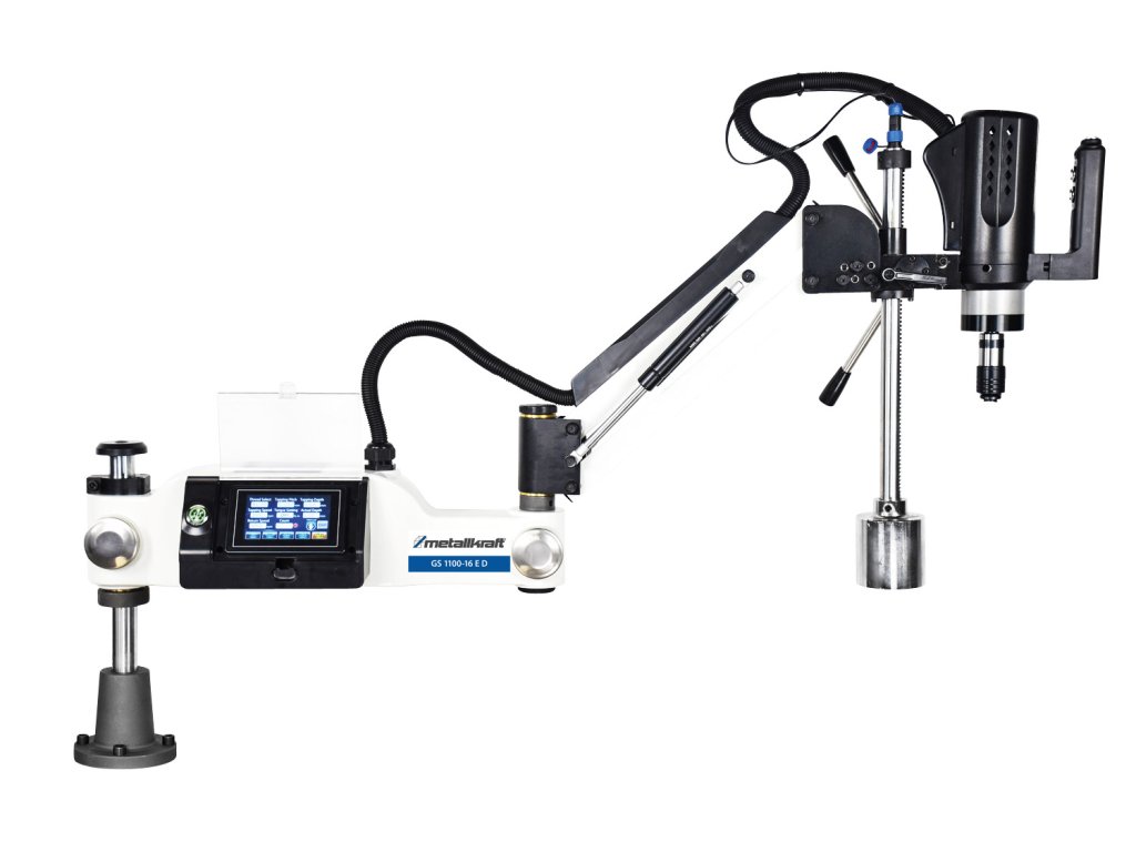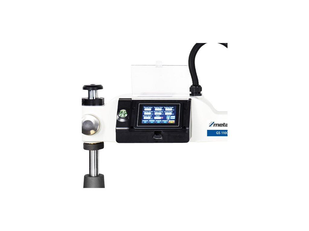 Závitořez s integrovaným magnetickým stojanem, volně pohyblivým ramenem a nastavením parametrů pomocí vestavěného displeje.