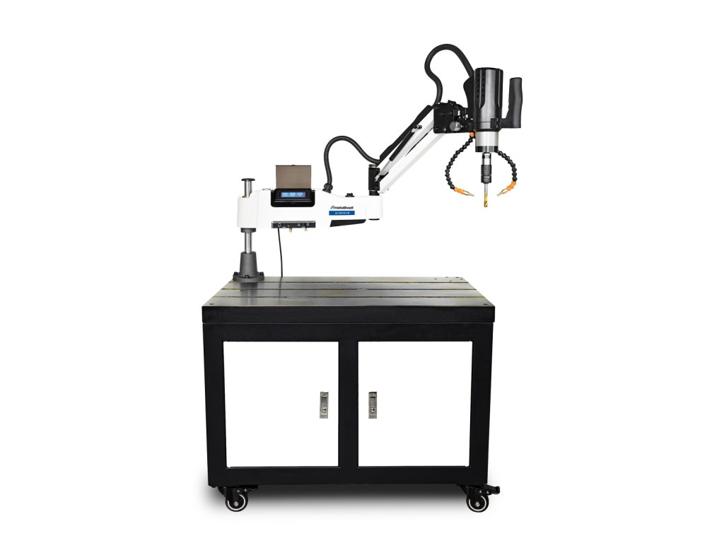 Závitořez s volně pohyblivým ramenem a nastavením parametrů pomocí vestavěného displeje.