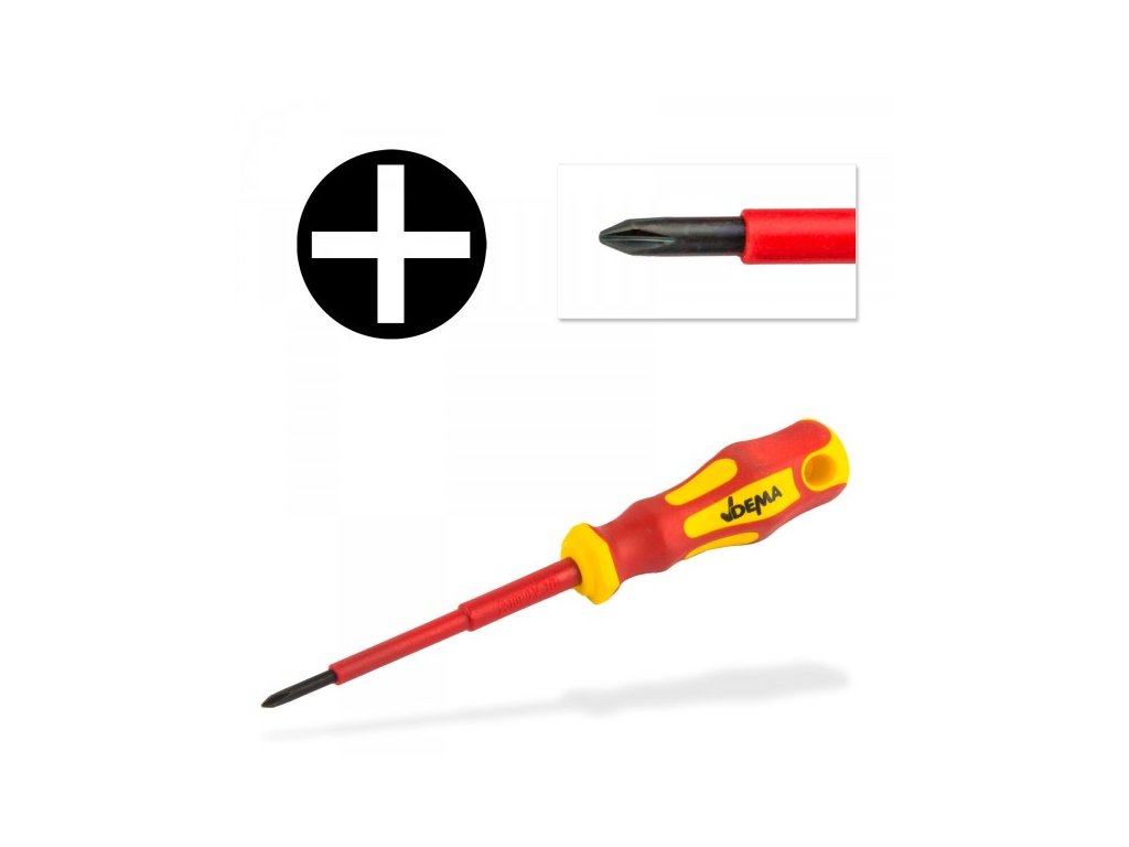 Krížový skrutkovač z kvalitnej chrómovo-vanádiovej ocele s magnetickým hrotom a odizolovanou kovovou časťou. Pevná ergonomicky tvarovaná plastová rukoväť s protišmykovou úpravou. Praktické očko na zavesenie. Kvalitná chróm-vanádiová oceľ
