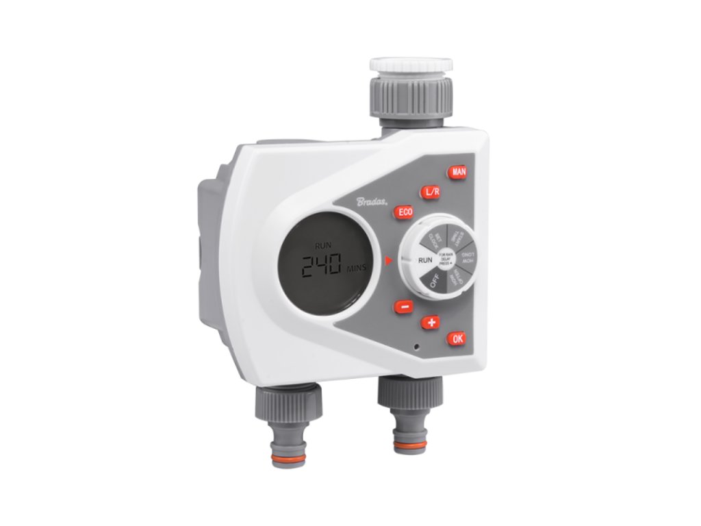 Dvojcestný elektronický ovládač umožňuje automatické aj manuálne ovládanie zavlažovacieho systému. LCD displej uľahčuje monitorovanie a nastavovanie. Dobu zavlažovania možno nastaviť od 1 do 240 minút. Dvojcestný elektronický ovládač umožňuje automatické aj manuálne ovládanie zavlažovacieho systému. LCD displej uľahčuje monitorovanie a nastavovanie. Dobu zavlažovania možno nastaviť od 1 do 240 minút. Možnosť oneskorenia zavlažovania, nastavenie času spustenia zavlažovania, úprava frekvencie zavlažovania. Disponuje tiež režimom ECO pre úsporu energie. Balenie obsahuje adaptér pre kohútiky s redukciou z 1" na 3/4" a mini-jack konektor pre senzor. Indikátor úrovne nabitia batérie.Doplňkové parametry