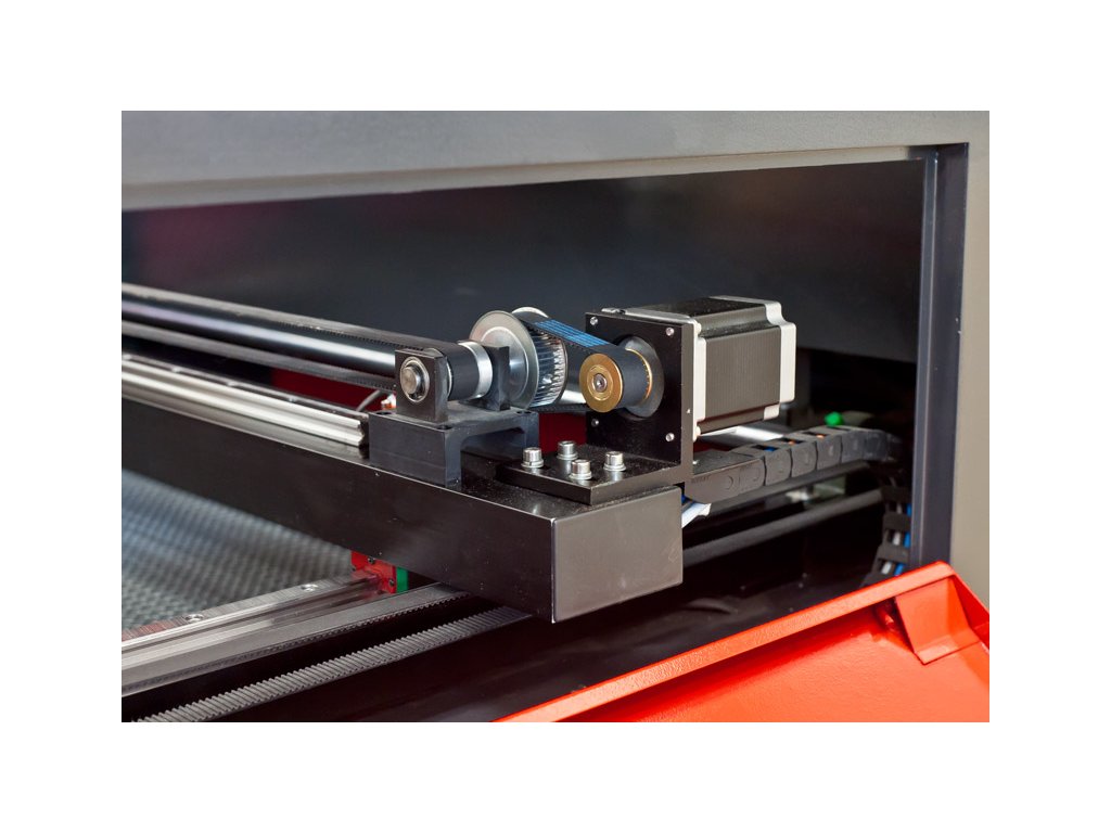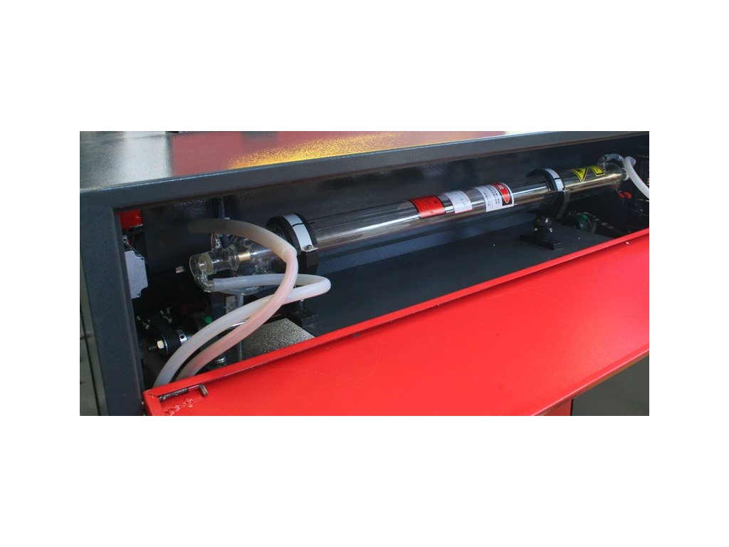 - Stroj je vybavený CO2 trubicí, což jej předurčuje pro gravírování a řezání všech organických materiálů jako např. plastů, kůže, textilu, dřeva, plexiskla, papíru, gumy, korku, kartonu a podobně a gravírování skla, keramiky, kamene.