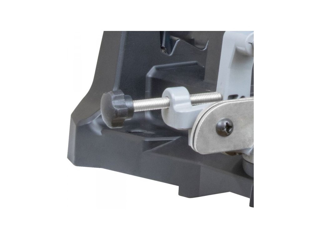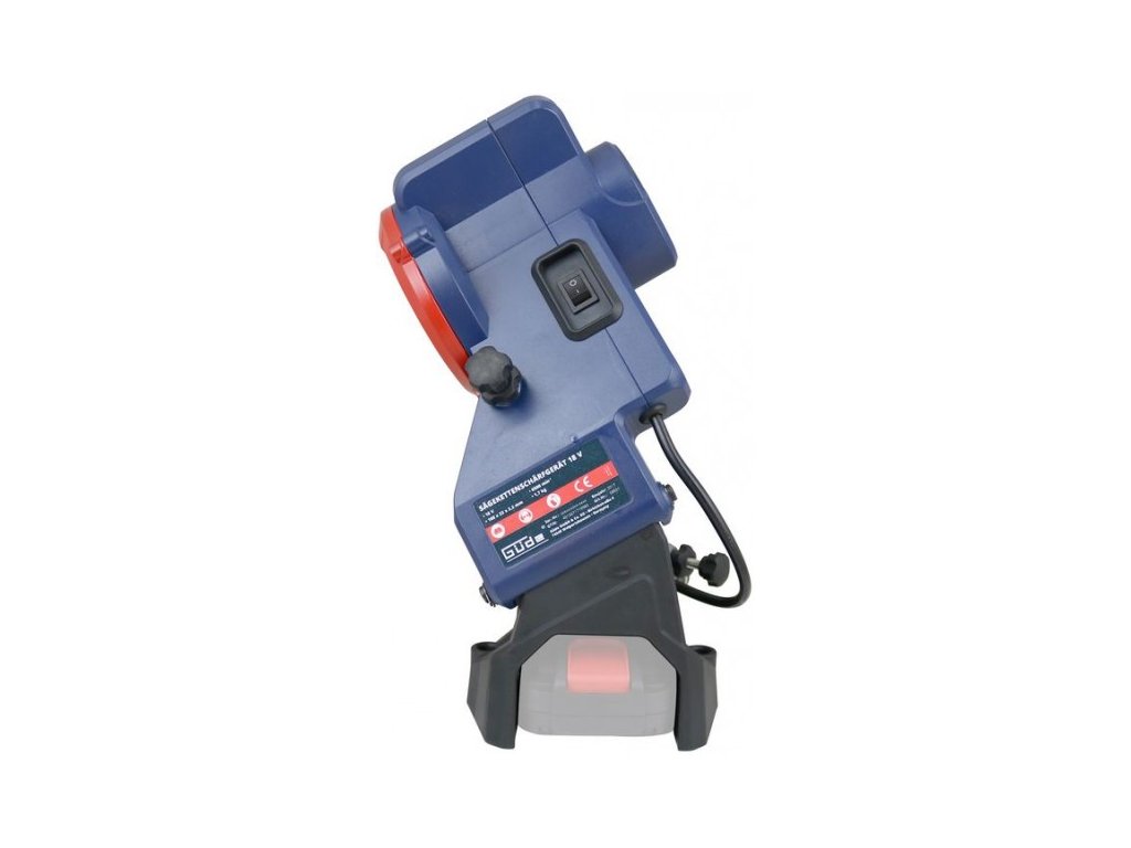 Nabíjačka 18V E³, uhol ostrenia 2 x 35°, nastaviteľné ručným kolieskom, pevný uhol čela 60°, obmedzená hĺbka brúsenia, vodiaca lišta reťaze s nastaviteľným dorazom, fixovanie reťaze upínacou pákou, stacionárna montáž, pre všetky bežné typy reťazí (uhol čela 60°). Bez batérie a nabíjačky. Technické údaje: