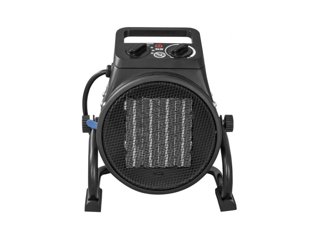 Elektrický ohrievač na efektívne vykurovanie menších vnútorných priestorov. Kompaktné rozmery a nízka hmotnosť. Maximálna bezpečnosť vďaka automatickému vypnutiu pri prehriatí. Plynulé nastavenie teploty pomocou termostatu. Rukoväť na prenášanie, nízka hlučnosť. PTC (pozitívny teplotný koeficient), 3 teplotné stupne. Technické údaje: