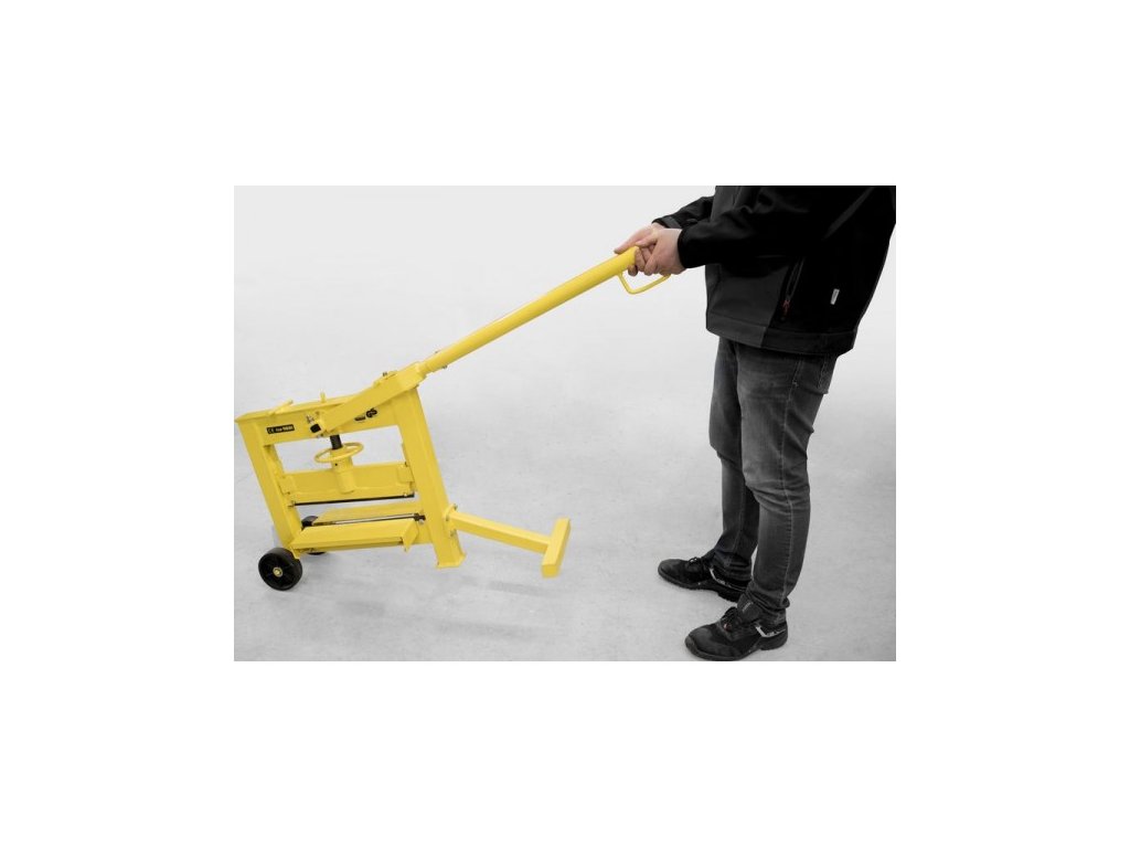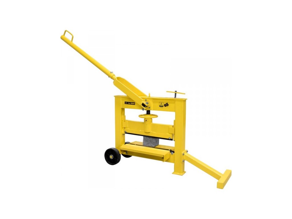 Lámačka na kameň s odpruženými podperami, jednoduché nastavenie výšky štiepania cez centrálne závitové vreteno, potrebná menšia sila vďaka teleskopickej násade, podvozok pre jednoduchý presun, výmenný nôž s troma čepeľami. Na lámanie kameňa, dosák, obrubníkov.