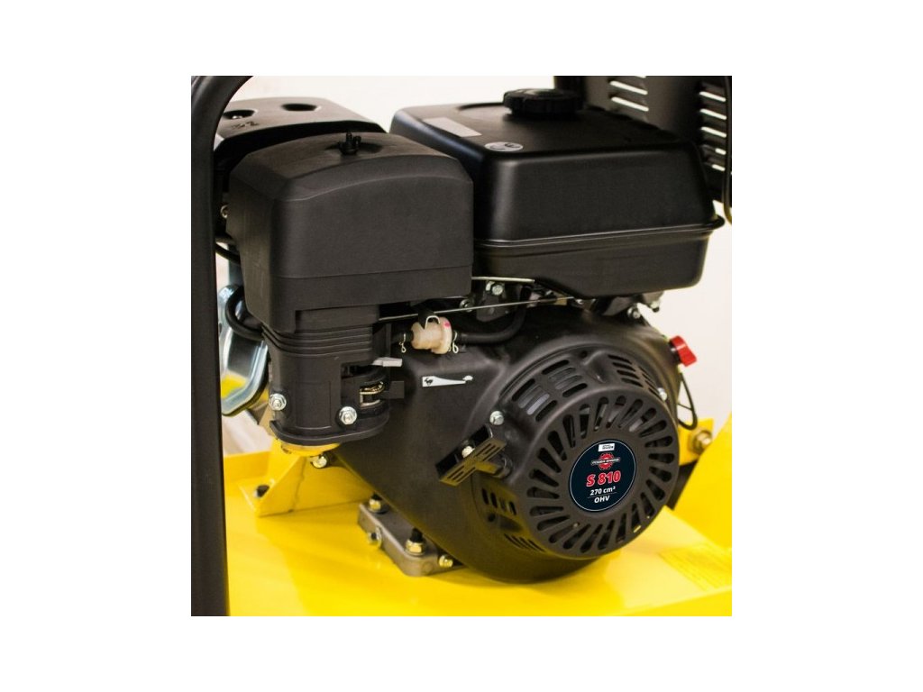 Doska ideálna na kladenie a opravu dlažby v záhradách a verejných priestranstvách, dostatočný výkon pre pohon a zhutňovanie, automatický predskok, doska odolná proti skrúteniu aj opotrebeniu, vibračná platňa má reverzný chod vpred aj vzad, jednoduchý transport vďaka veľkým kolesám a oceľovému rámu, sklopná rukoväť, tlmenie vibrácií rukoväte, gumená podložka pre citlivé povrchy, podvozok. Technické údaje: