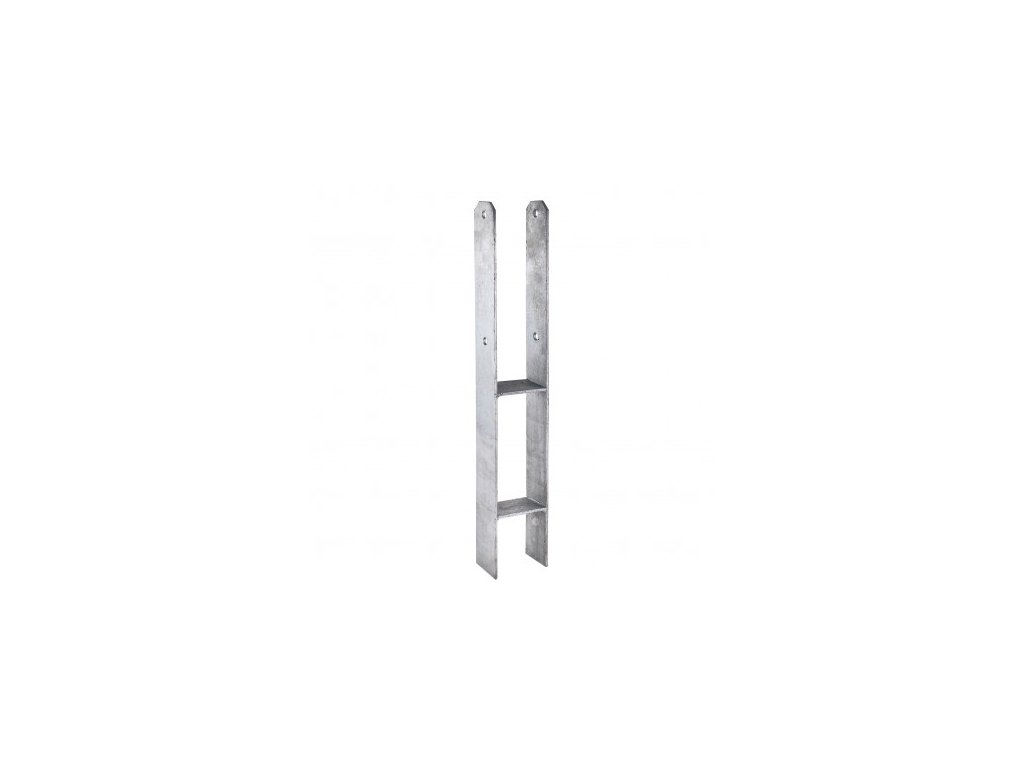 Pozinkovaný držiak stĺpika v tvare H na upevnenie ľahkých až stredne ťažkých drevených konštrukcií, ako sú napríklad prístrešky, prístrešky na auto, striešky, altánky a podobne. Z pevného oceľového plechu, celý povrch žiarovo pozinkovaný pre optimálnu ochranu proti korózii a dlhú životnosť. H-kotva na stĺpik 91x60x600 mm