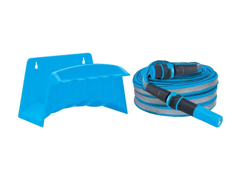 Praktický set hadice s dýzou a držiakom AQUACRAFT® 870102 ušetrí miesto na vašej záhrade. Set obsahuje textilnú plochú hadicu s dĺžkou 20 metrov, dýzu so 2 vzormi a držiak na stenu s priestorom na príslušenstvo.