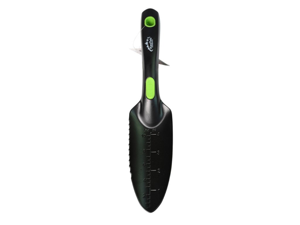 Lopatka z vysoko kvalitného tlakovo liateho hliníka na sadenie kvetov, byliniek a malých kríkov. Je veľmi ľahká, vďaka čomu je sadenie a presádzanie rýchle a jednoduché. Výškový ukazovateľ na lopatke umožňuje nastaviť hĺbku výsadby až do 10 cm. Lopatka z vysoko kvalitného tlakovo liateho hliníka na sadenie kvetov, byliniek a malých kríkov. Je veľmi ľahká, vďaka čomu je sadenie a presádzanie rýchle a jednoduché. Výškový ukazovateľ na lopatke umožňuje nastaviť hĺbku výsadby až do 10 cm. Zúbkovaná hrana umožňuje presnú prácu, ideálna na prepichovanie a vykopávanie koreňov a odburiňovanie. Rukoväť s ergonomickými mäkkými vložkami a rebrovaná opierka na palec zaisťujú bezpečný úchop počas záhradníckych prác. Keď sa kultivátor nepoužíva, dá sa vďaka otvoru v rukoväti zavesiť, aby sa ušetrilo miesto. Materiál: hliníkový odliatok Farba: čierna, zelená Šírka: 76 mm Dĺžka rukoväte: 135 mm Celková dĺžka: 285 mm Hmotnosť: 157 gDoplňkové parametry