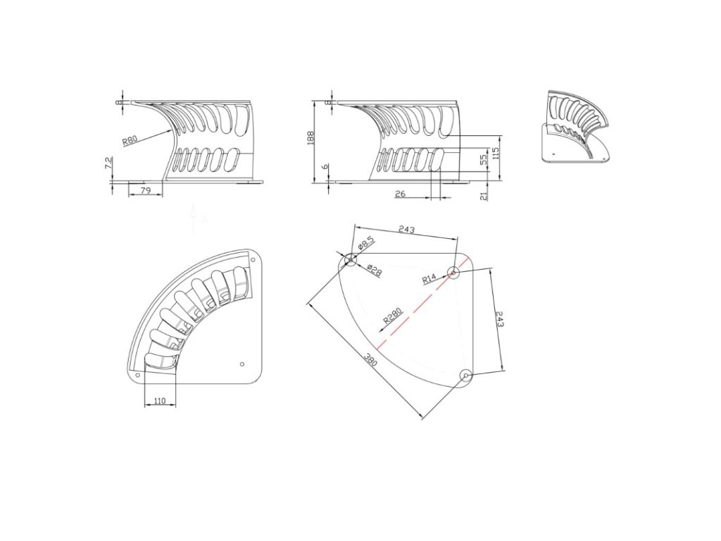 Hliníkový nástenný držiak na hadicu tvar A, veľkosť XL