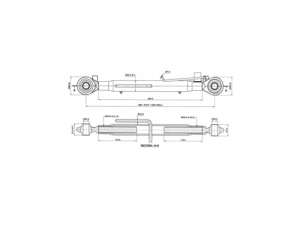 Horná tyč riadenia slúži na profesionálne spojenie prípojných zariadení s trojbodovým upínaním s traktorom na poľnohospodárskej a komunálnej úrovni. Kvalitné ťažké prevedenie, pozinkované upínacie prvky, guľové kĺby z kalenej ocele, so zaisťovacou maticou a kolíkom.