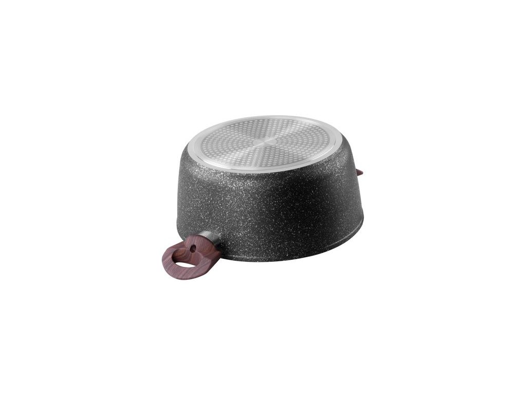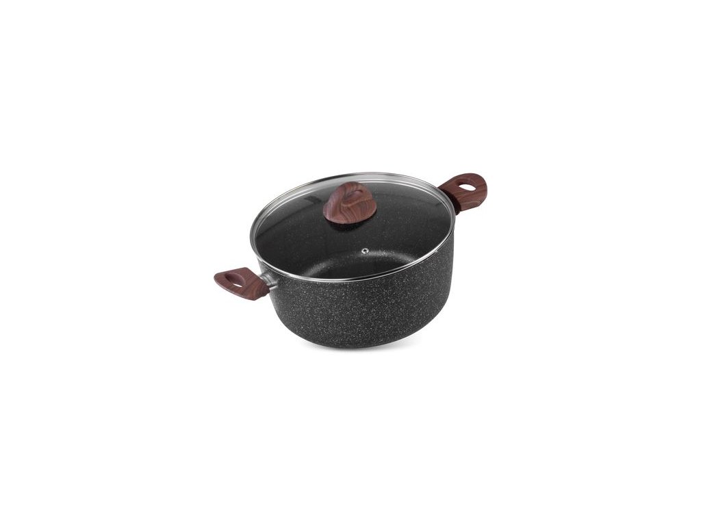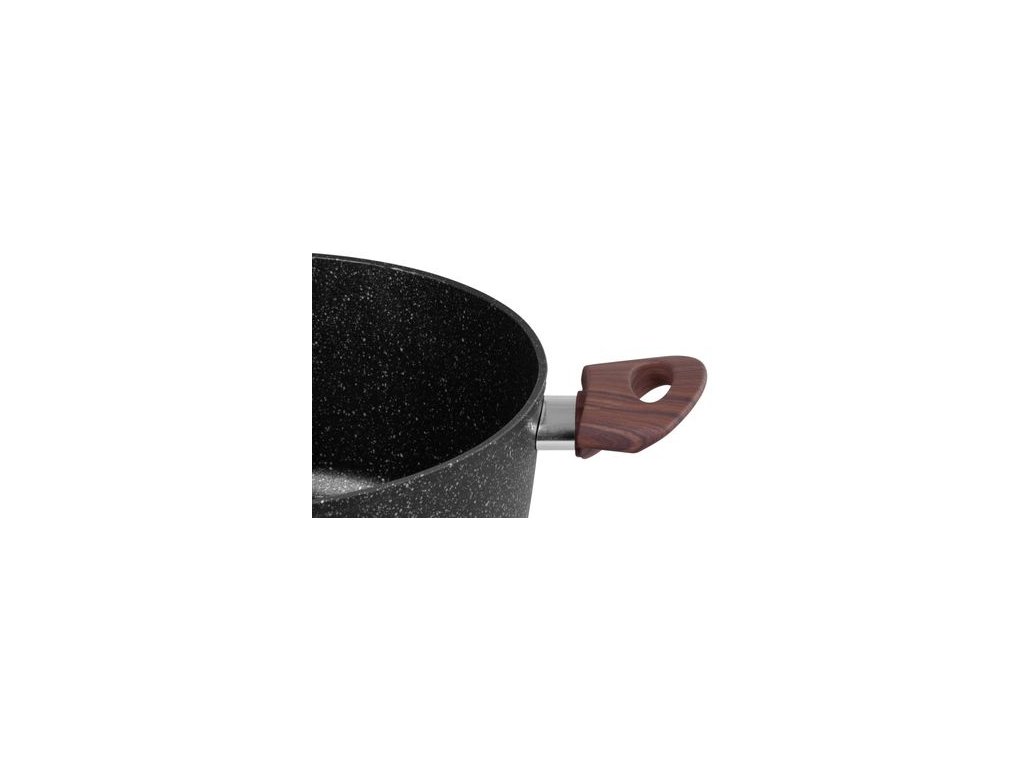 Ak si potrpíte na kvalitné kuchynské riady, tento hrniec je pre Vás ako stvorený. Hrniec s pokrievkou MagicHome Black Marble Line je vyrobený zo zliatiny hliníka s nepriľnavým povrchom a 3-vrstvovým mramorovým náterom. Má 3 mm indukčné dno, ktoré šetrí energiu. Rukoväť obsahuje drevený náter s ochranou proti plameňu. Hrniec je vhodný na všetky typy sporákov : indukcia, elektrika, plyn, sklokeramika a halogén a je tiež vhodný do umývačky riadu. Nevhodný do rúry. Je šetrný k životnému prostrediu, neobsahuje PFOA, PFOS, VOC, PB ani CD. Objem: 4 litre.