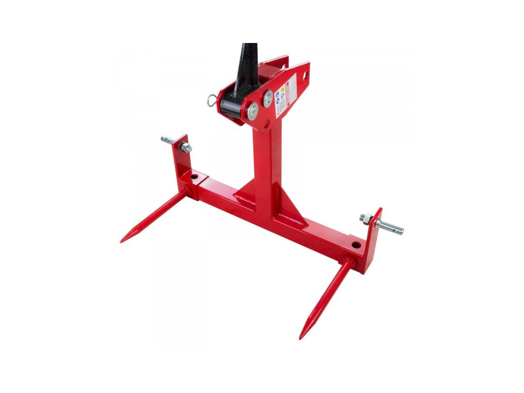 Balíkový hrot určený na použitie v poľnohospodárstve na zdvíhanie balíkov sena, slamy. Pre traktory vybavené trojbodovým závesom kategórie I. Oceľová konštrukcia. Výklopný hrot (transportná poloha).