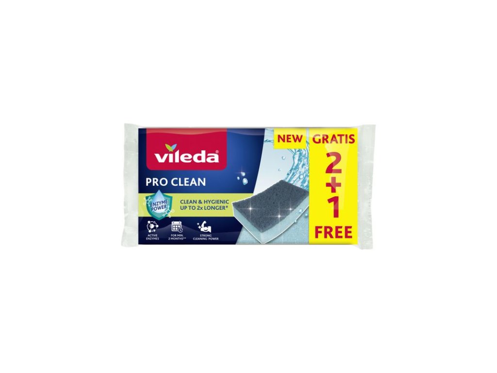 Objavte silu enzýmov s revolučnou hubkou Vileda Pro Clean – prvou na trhu, ktorá využíva enzýmovú technológiu pri mechanickom čistení. Balenie obsahuje 2 + 1 kus zadarmo, ideálne pre každodenné hygienické upratovanie bez kompromisov.