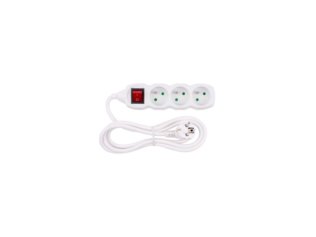 Kábel DG-F803BK L-1.5 m, predlžovací, biely, 3x zásuvka + vypínač
