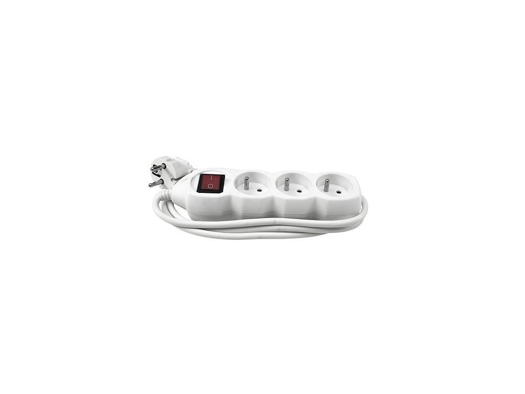 Kábel DG-F803BK L-3 m, predlžovací, biely, 3x zásuvka + vypínač