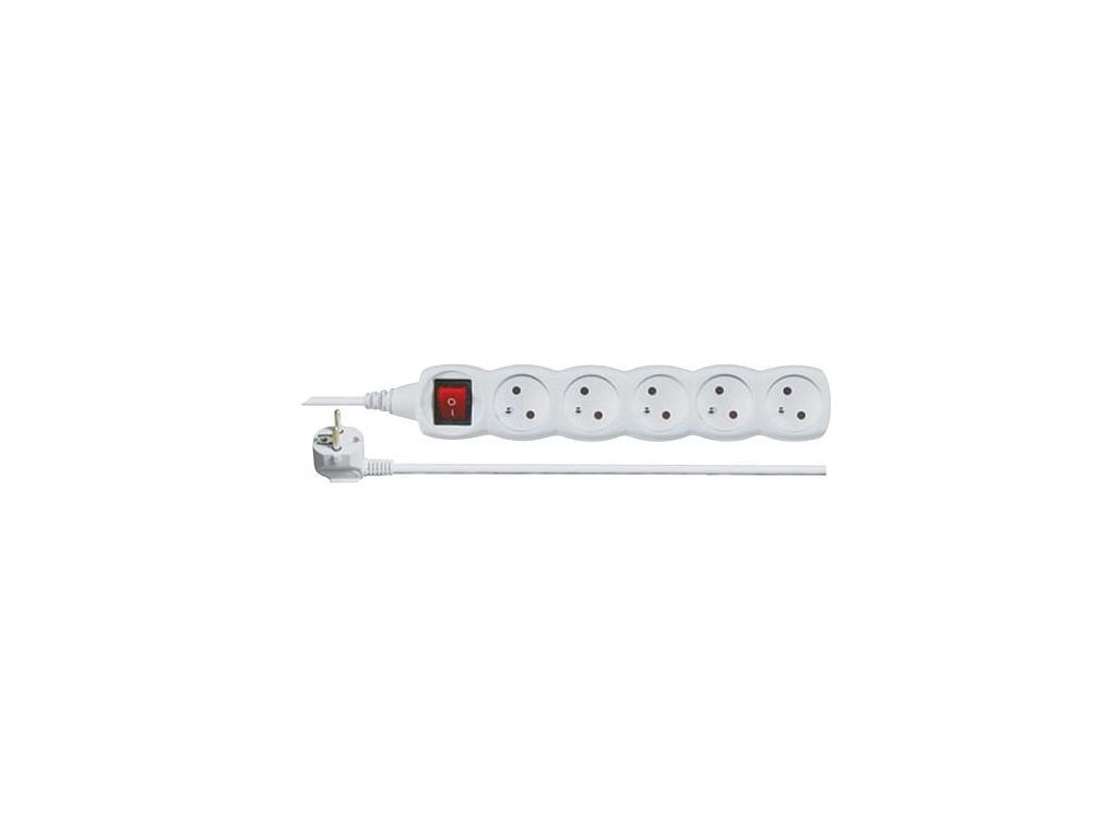 Kábel DG-F805BK L-3 m, predlžovací, biely, 5x zásuvka + vypínač