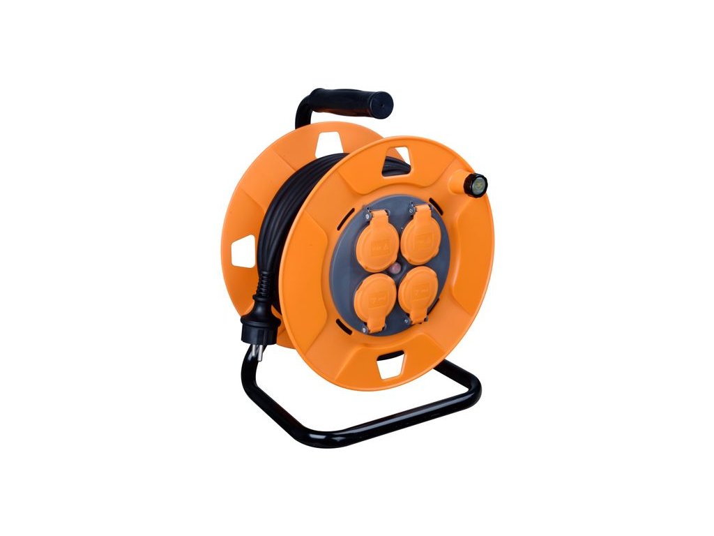 Kvalitný predlžovací kábel Strend Pro CR038 v oranžovom prevedení namotaný na bubne je dlhý 50 metrov. Efektívne rozšíri prívod elektriny do vzdialených miest. Na bubne má štyri zásuvky (230 V), takže môžete napájať viacero zariadení naraz. Svoje využitie nájde vo firmách aj záhradách.
