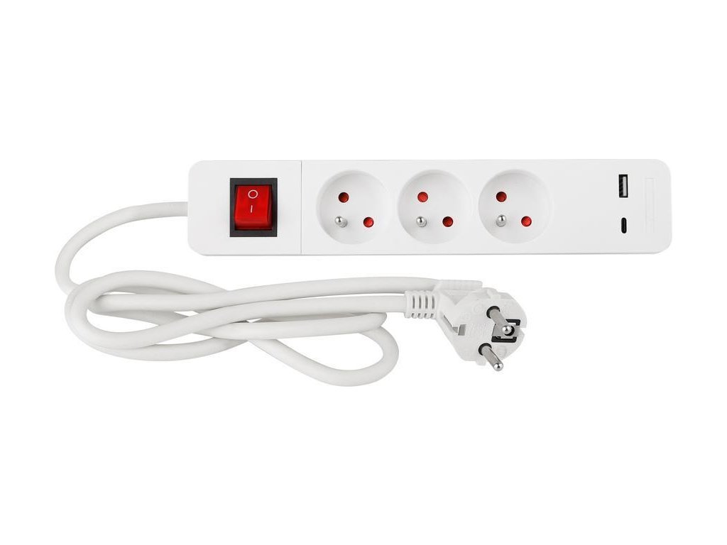 Praktický predlžovací kábel LG-FB603K v bielej farbe zabezpečí prívod elektrickej energie až do dĺžky 1,4 metra. Svoje využitie nájde v kanceláriách, ale aj v domácnostiach. Vďaka trom zásuvkám umožňuje pripojenie viacero zariadení naraz. Praktickou funkciou je napájanie cez USB A a USB C 5,2V výstupy, takže si ľahko nabijete mobil či iné elektronické zariadenie bez potreby adaptéru. Maximálna záťaž: 16 A. Priemer vodiča: 1,5 mm2.