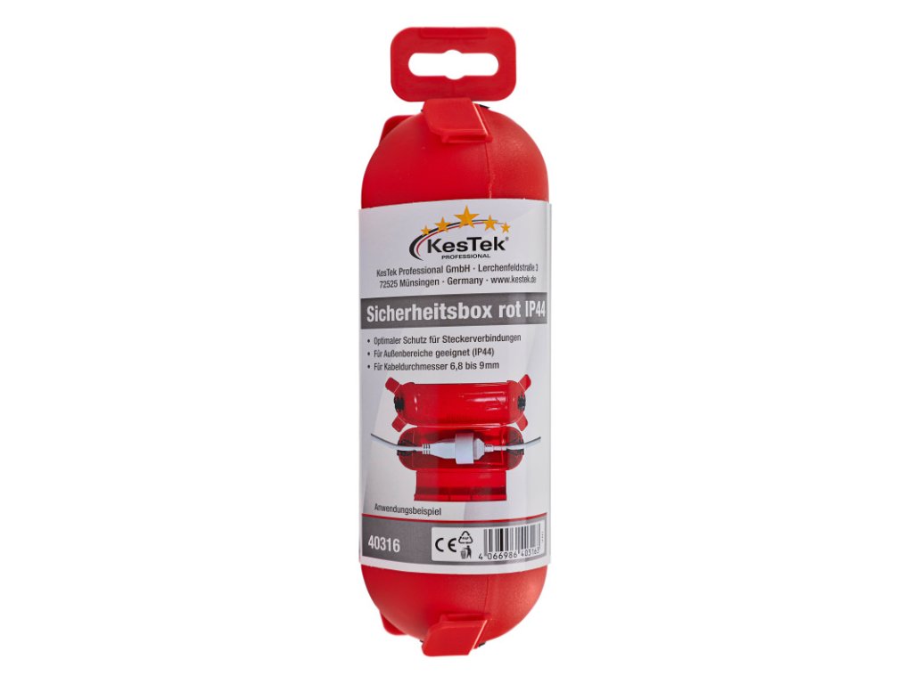 Červený bezpečnostný box so stupňom ochrany IP44 je vhodný na gumené alebo plastové konektory. Poskytuje ideálnu ochranu konektorov napájacieho kábla pred nečistotami, vlhkosťou a neželaným rozpojením káblového spojenia. Červený bezpečnostný box so stupňom ochrany IP44 je vhodný na gumené alebo plastové konektory. Poskytuje ideálnu ochranu konektorov napájacieho kábla pred nečistotami, vlhkosťou a neželaným rozpojením káblového spojenia. Vhodný na použitie pri kempovaní, v záhrade pri kosení trávnika, na slávnostné alebo vianočné osvetlenie alebo pri práci s elektrickými zariadeniami vo vonkajších priestoroch. Bezpečnostný box je možné rýchlo rozpoznať alebo nájsť vďaka výraznej červenej farbe. Vhodný na vnútorné a vonkajšie použitie, odolný proti striekajúcej vode, nie je vodotesný. Vhodný na káble s priemerom: 6,8 až 9,0 mm Farba: červená Materiál: plast Stupeň ochrany: IP44 Celkové rozmery (DxŠxV): 210 x 70 x 68 mm Hmotnosť: 119 gDoplňkové parametry