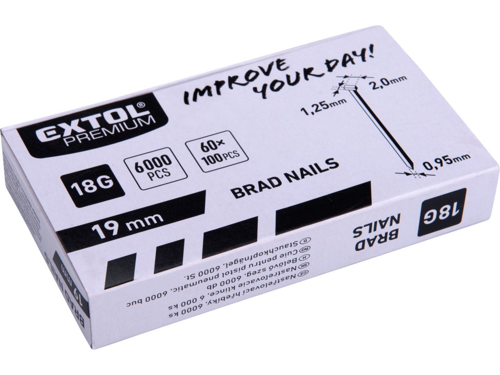 hřebík nastřelovací, 6000ks, 19mm, 18G, typ F, hlava 2mm, 1,25x0,95mm, EXTOL PREMIUM