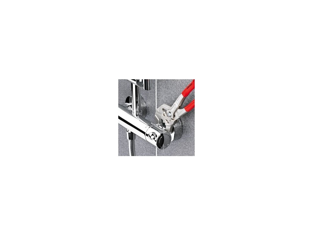 - Hladké čelisti pro šetrnou montáž povrchově zušlechtěných armatur - práce přímo na chromu!