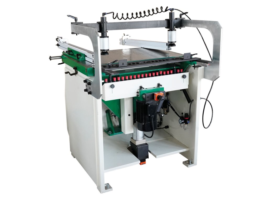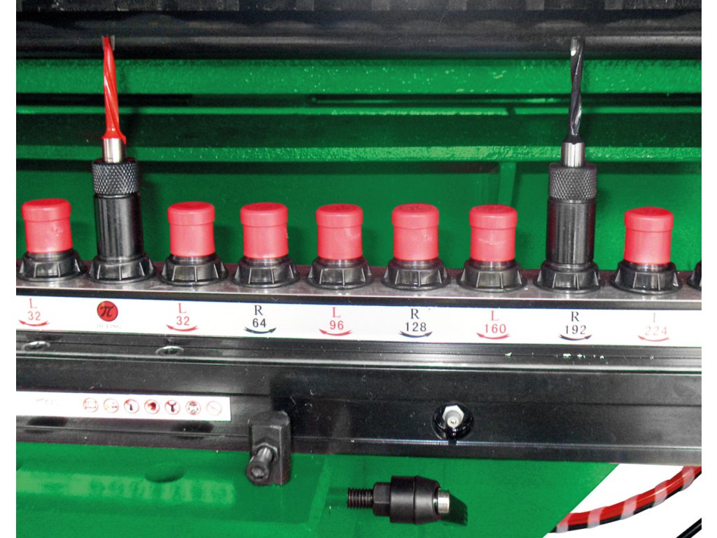 - Vrtací agregát s 21 vřeteny a pneumatickým naklápěním v rozsahu 45 až 90°