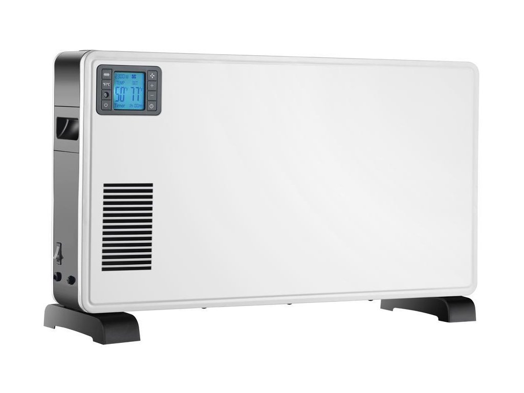 So zapnutým ventilátorom dokáže rýchlejšie a rovnomernejšie šíriť teplo. Jeho vysoký výkon zaisťuje dostatočnú výhrevnosť. Tepelný výkon dosahuje 1000/1300 W/2300 W. Konvektor je vybavený praktickou rukoväťou, digitálnym displejom, tepelnou poistkou, regulátorom tepelného výkonu a regulátorom termostatu. Dĺžka napájacieho kábla dosahuje 1,7 m.