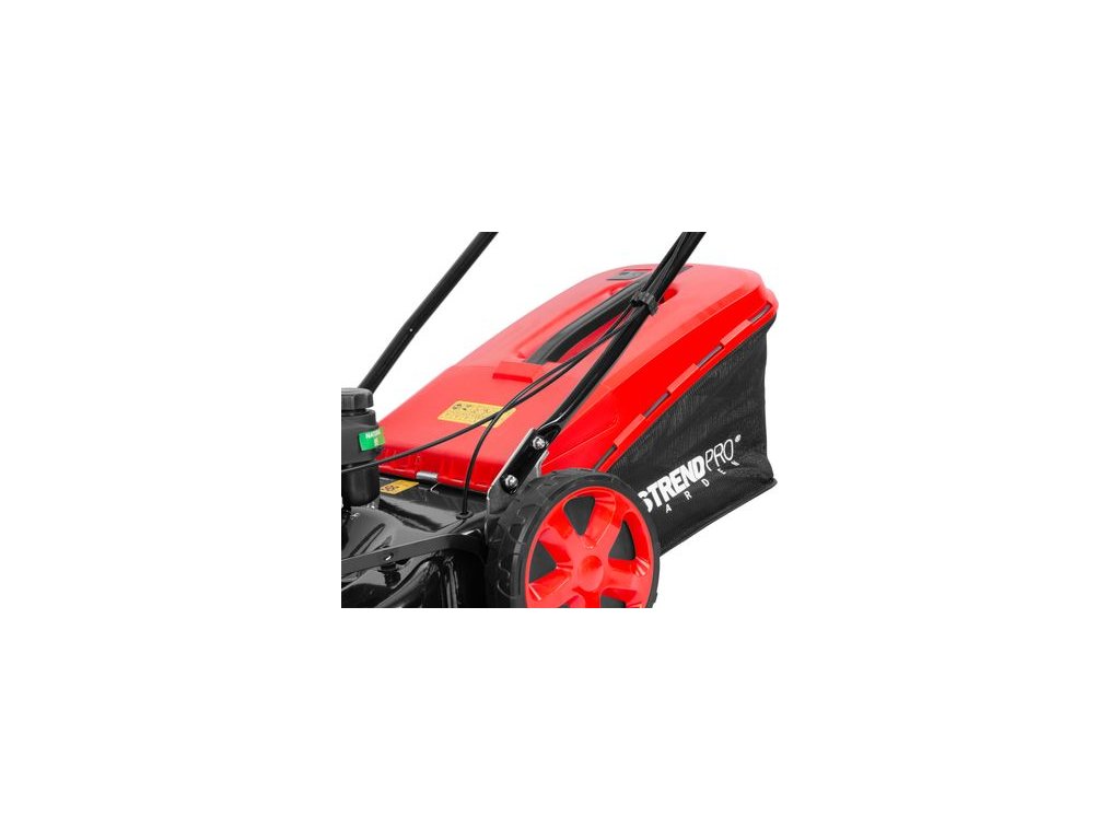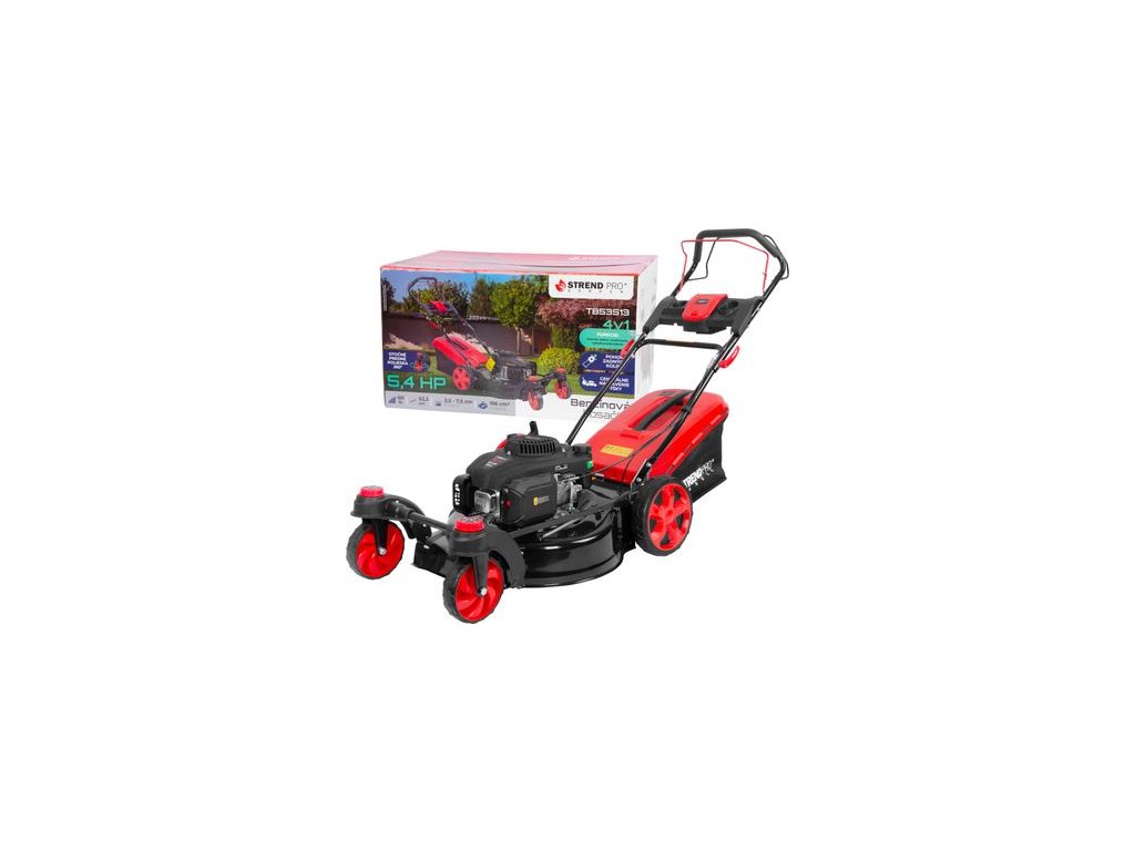 Benzínová záhradná kosačka Strend Pro TB53S13 s pojazdom určená na kosenie trávy je nevyhnutnou súčasťou každej záhrady. Kosačka je vybavená 4-taktným vzduchom chladeným motorom LONCIN V200 s obsahom 196 cm3 s menovitým výkonom 4 kW (5,4 HP). Disponuje jedinečným riešením otočných predných kolies, ktoré výrazne napomáhajú pri manévrovaní popri stromoch a kríkoch. Pomocou nastavovacieho tlačidla zablokujete otáčanie kolies, prípadne nastavíte smer jazdy. Praktickým doplnkom je odkladací priestor na rukoväti na mobil a nápoj. Kosačka umožňuje vybrať si zo 7 pozícií výšky kosenia v rozsahu 25 - 75 mm. Šírka záberu pri kosení dosahuje skvelých 53,3 cm. Je tiež vybavená praktickým zberným košom s objemom 60 litrov s ukazovateľom stavu naplnenia. Kosačka pracuje rýchlosťou až 3600 otáčok/min. Stabilný a pevný oceľový skelet je opatrený otvorom pre bočné vyhadzovanie. Vďaka tomu je možné kosiť i ľahko prerastenú trávu, a bez toho, aby sa kosačka hltila a obsluha šliapala v pokosenej tráve. S mulčovacou záslepkou trávu pokosíte na malé kúsky, ktoré následne v tráve plnia funkciu hnojenia. Ručné štartovanie. Motor je vybavený sytičom pre studený štart. Kosačka disponuje sklopnou rukoväťou, takže výrazne šetrí priestor pri uskladnení. Jednoduchá obsluha.