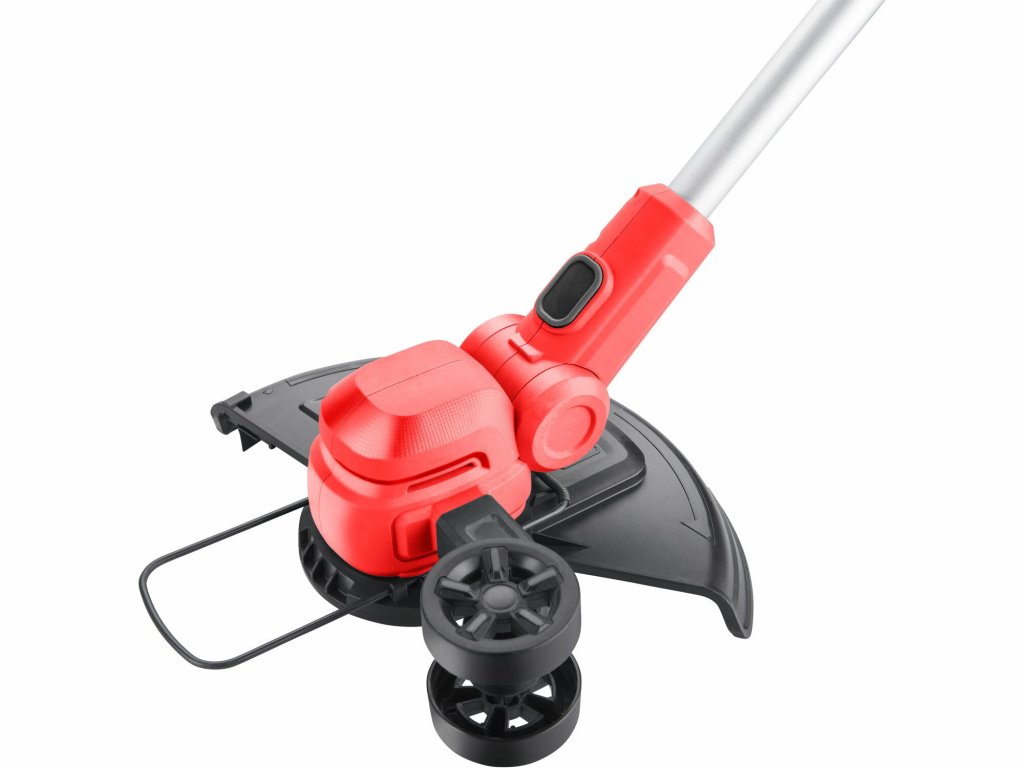 Strunová akumulátorová kosačka je ideálna na pravidelnú údržbu záhradného trávnika, precízne zarovnanie okrajov a kosenie v ťažko dostupných miestach, napr. pri obrubníkoch, pod lavičkami či okolo stromov a kríkov. Na kosačke je možné nastaviť uhol žacej hlavy a tiež ju otočiť o 90° kolmo k zemi, čo uľahčuje kosenie pri okrajoch trávnikov, pozdĺž chodníkov, príjazdových ciest a pod. Teleskopická rukoväť sa dá predĺžiť až o 23 cm, aby sa kosačka prispôsobila používateľom rôznych výšok a umožnila pohodlnú prácu. Strunu môžete predĺžiť dvoma spôsobmi – manuálne stlačením tlačidla na žacej hlave alebo jednoducho poklepom o zem počas práce. Ochranný kryt so zabudovaným nožom navyše automaticky oreže strunu na optimálnu dĺžku. Kosenie pozdĺž plotov, múrov či stromov uľahčuje praktický sklopiteľný dištančný oblúk, ktorý zároveň chráni sekaciu strunu pred nadmerným opotrebením. Napájanie z batérie eliminuje starosti s napájacím káblom, kosačka je tak ľahšia, tichšia a manipulácia s ňou je podstatne pohodlnejšia. Pogumovaná rukoväť zabraňuje vyšmyknutiu, tlmí vibrácie a zvyšuje komfort pri držaní.- záber kosenia 30cm