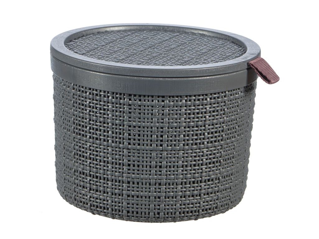 Košík s vekom Curver® JUTE ROUND, 2 lit., tmavosivý, s vekom, 17x13 cm