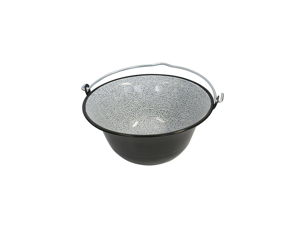 Kovový kotlík 6 lit, smaltovaný na guľáš s pozinkovaným kovovým držadlom. Vhodný na prípravu jedla pri táborení v prírode, pri vode alebo v domácnosti.Doplňkové parametry