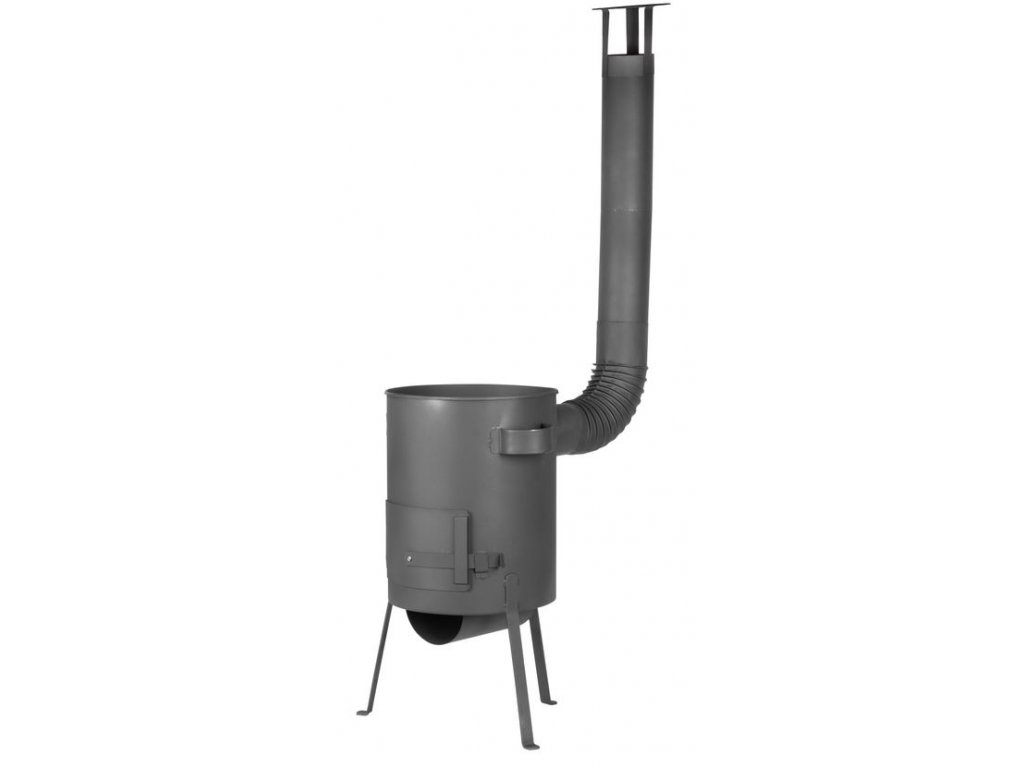 Kotlina Baker pod kotlík s objemom 10 litrov. Priemer kotliny je 36 cm, balenie obsahuje aj dymovod s priemerom 12 cm, koleno a striešku.