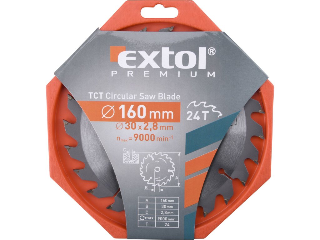 kotouč pilový s SK plátky, O 160x2,6x30mm, 24T, EXTOL PREMIUM