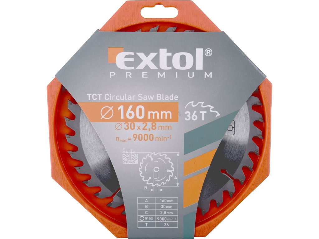 kotouč pilový s SK plátky, O 160x2,6x30mm, 36T, EXTOL PREMIUM