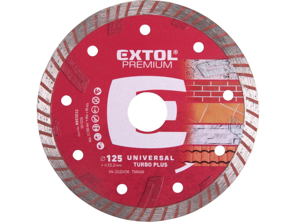 kotouč diamantový řezný TURBO PLUS - suché i mokré řezání, O 125x22,2x2,2mm, EXTOL PREMIUM