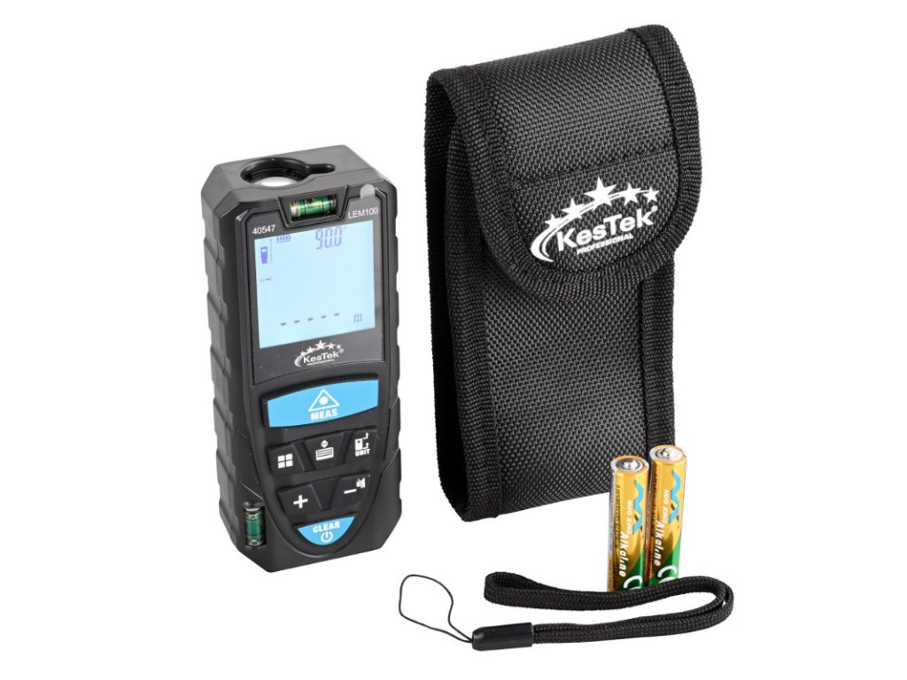 Laserový diaľkomer vykonáva presné merania rýchlo a bez námahy. Toto multifunkčné zariadenie, určené na meranie od 0,05 do 100 metrov, ponúka meranie uhlov v reálnom čase a ultra jasný LCD displej. Laserový diaľkomer vykonáva presné merania rýchlo a bez námahy. Toto multifunkčné zariadenie, určené na meranie od 0,05 do 100 metrov, ponúka meranie uhlov v reálnom čase a ultra jasný LCD displej. S 8 režimami merania, 20 miestami na ukladanie údajov a funkciou stlmenia zvuku pre prostredia citlivé na hluk. Okrem merania vzdialenosti ponúka funkcie na meranie plochy a kontinuálne meranie s minimálnymi/maximálnymi hodnotami, ako aj Pytagorovu vetu na nepriame meranie dĺžky. Vďaka automatickému vypnutiu lasera po 20 sekundách a zariadenia po 180 sekundách je bezpečný a energeticky úsporný. Východiskový bod merania je možné zvoliť medzi zadným a predným okrajom zariadenia. Vrátane popruhu na prenášanie, puzdra na opasok a 2x 1,5 V AAA batérií. Režimy merania: Meranie jednej vzdialenosti, kontinuálne meranie, meranie plochy, meranie objemu, 2-bodové meranie Pytagorovej rovnice, 3-bodové meranie Pytagorovej rovnice, automatické meranie úrovne, automatické meranie výšky Materiál: plast Typ displeja: LCD Napájanie: 3 V (2x 1,5V AAA batérie) Merací dosah: 100 m Presnosť merania: ± 2 mm Trieda laseru: II (630 - 670 mm,Doplňkové parametry