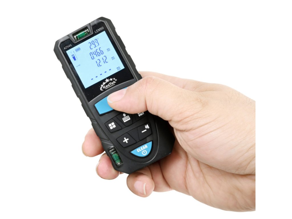 Laserový diaľkomer vykonáva presné merania rýchlo a bez námahy. Toto multifunkčné zariadenie, určené na meranie od 0,05 do 50 metrov, ponúka meranie uhlov v reálnom čase a ultra jasný LCD displej. Laserový diaľkomer vykonáva presné merania rýchlo a bez námahy. Toto multifunkčné zariadenie, určené na meranie od 0,05 do 50 metrov, ponúka meranie uhlov v reálnom čase a ultra jasný LCD displej. S 8 režimami merania, 20 miestami na ukladanie údajov a funkciou stlmenia zvuku pre prostredia citlivé na hluk. Okrem merania vzdialenosti ponúka funkcie na meranie plochy a kontinuálne meranie s minimálnymi/maximálnymi hodnotami, ako aj Pytagorovu vetu na nepriame meranie dĺžky. Vďaka automatickému vypnutiu lasera po 20 sekundách a zariadenia po 180 sekundách je bezpečný a energeticky úsporný. Východiskový bod merania je možné zvoliť medzi zadným a predným okrajom zariadenia. Vrátane popruhu na prenášanie, puzdra na opasok a 2x 1,5 V AAA batérií. Režimy merania: Meranie jednej vzdialenosti, kontinuálne meranie, meranie plochy, meranie objemu, 2-bodové meranie Pytagorovej rovnice, 3-bodové meranie Pytagorovej rovnice, automatické meranie úrovne, automatické meranie výšky Materiál: plast Typ displeja: LCD Napájanie: 3 V (2x 1,5V AAA batérie) Merací dosah: 50 m Presnosť merania: ± 2 mm Trieda laseru: II (630 - 670 mm,Doplňkové parametry