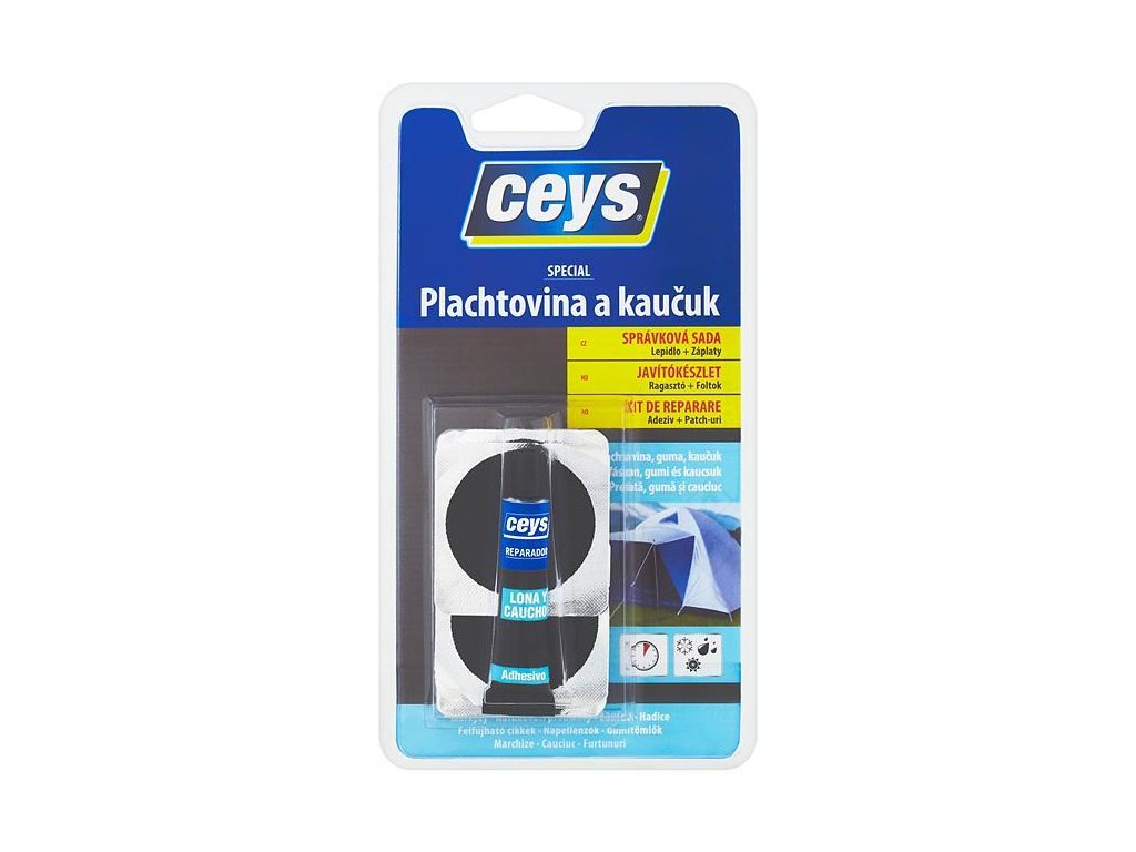 Spája a upravuje malé otvory a trhliny v plachtovinách s extrémnou jednoduchosťou, rýchlosťou a účinnosťou. Vytvára nepriedušné riešenie. Opravná kolekcia obsahuje lepidlo, šmirgľový papier a 4 záplaty (3 okrúhle a 1 oválna).