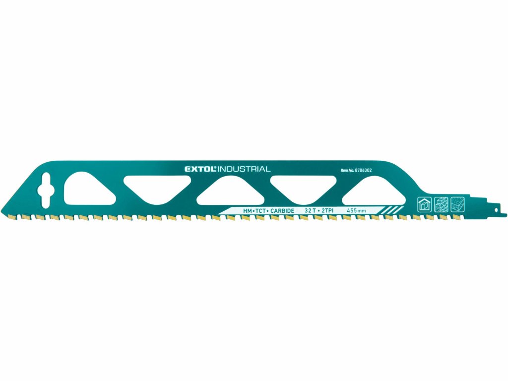 List pílový do chvostovej píly, 455x50x1,5mm, 32 zubov, SK plátky, SK plátky, EXTOL INDUSTRIAL