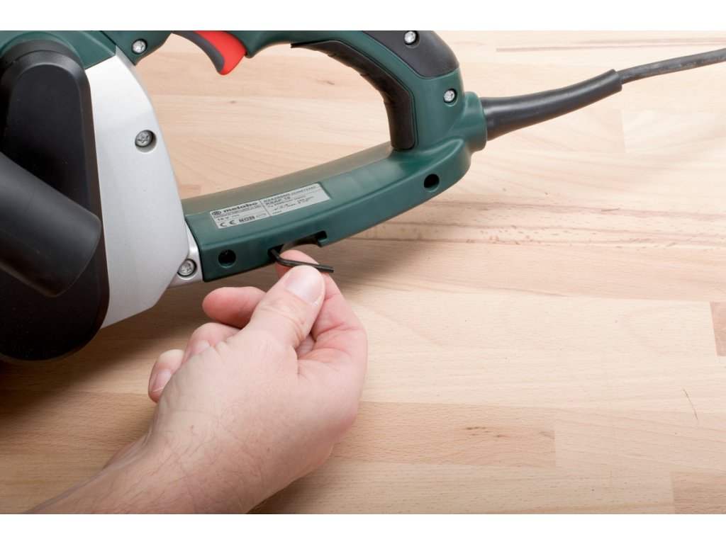 - S podélným dorazem k přesnému vedení obrobku při stacionárním používání
