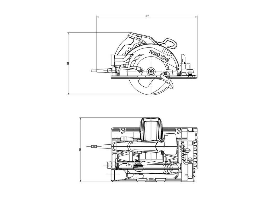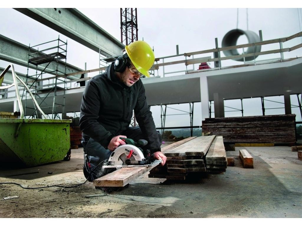 - Robustní ruční okružní pila, kterou lze nasadit přímo na vodicí lišty Metabo a lišty jiných výrobců