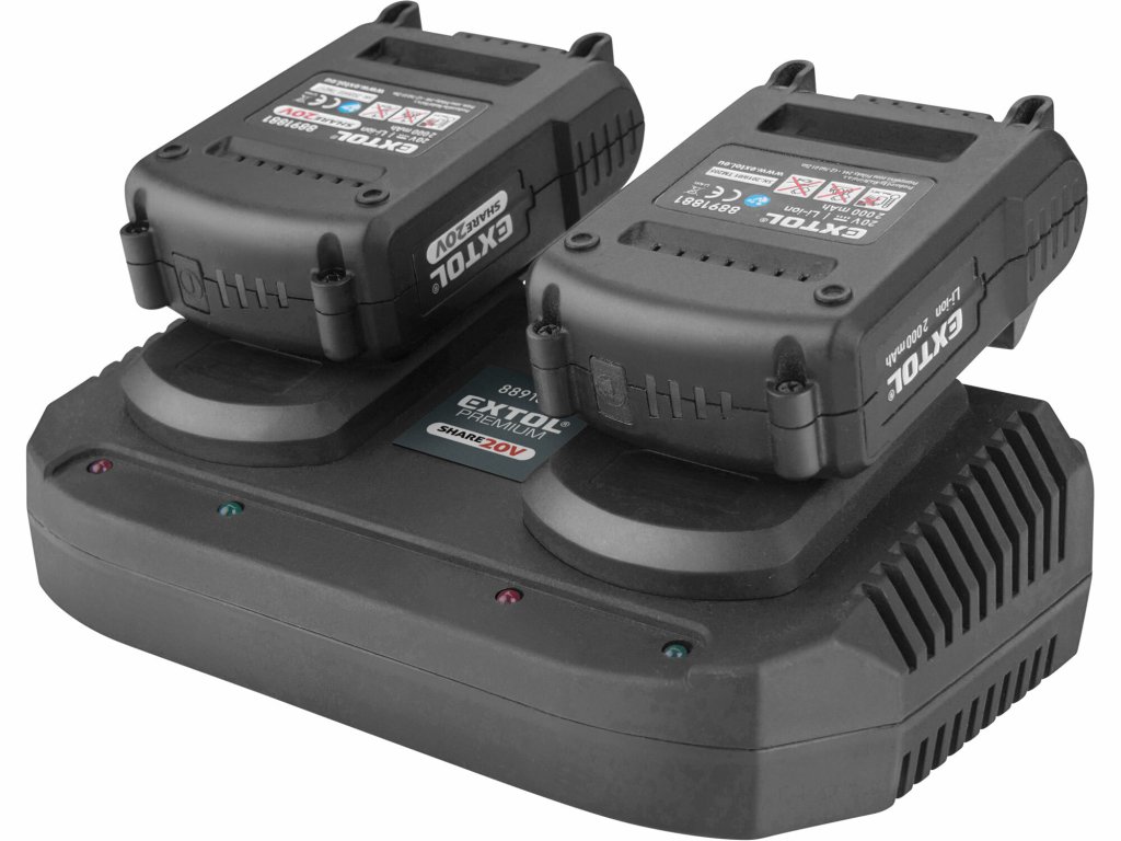 Nabíječka akumulátorů Share20V, 2 aku, 2x 3,5A, pro 88918XX, 87918XX, EXTOL PREMIUM