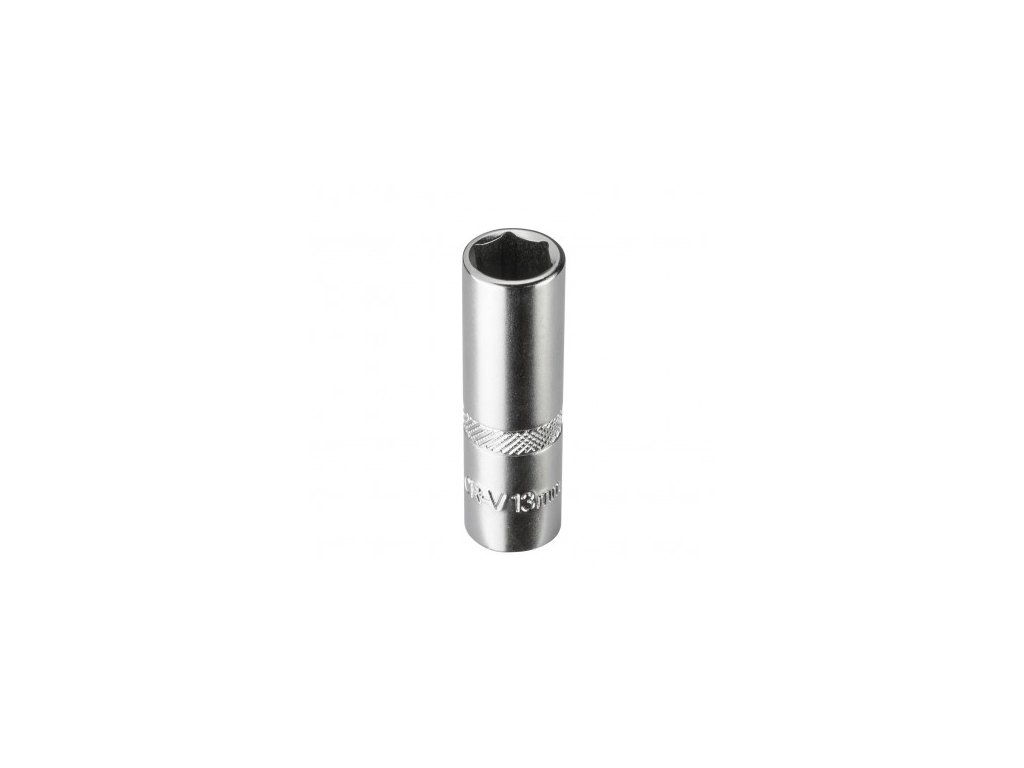 Šesťhranný nástrčkový kľúč, dlhé prevedenie, z chróm-vanádiovej ocele, pochrómovaný povrch, kosouhlo vrúbkovaný. Nástrčkový kľúč / orech dlhý 13 mm 3/8"