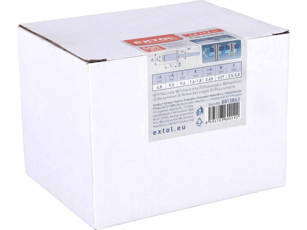 Nity trhacie hliníkové, 2,4x8mm, 1000ks, EXTOL PREMIUM