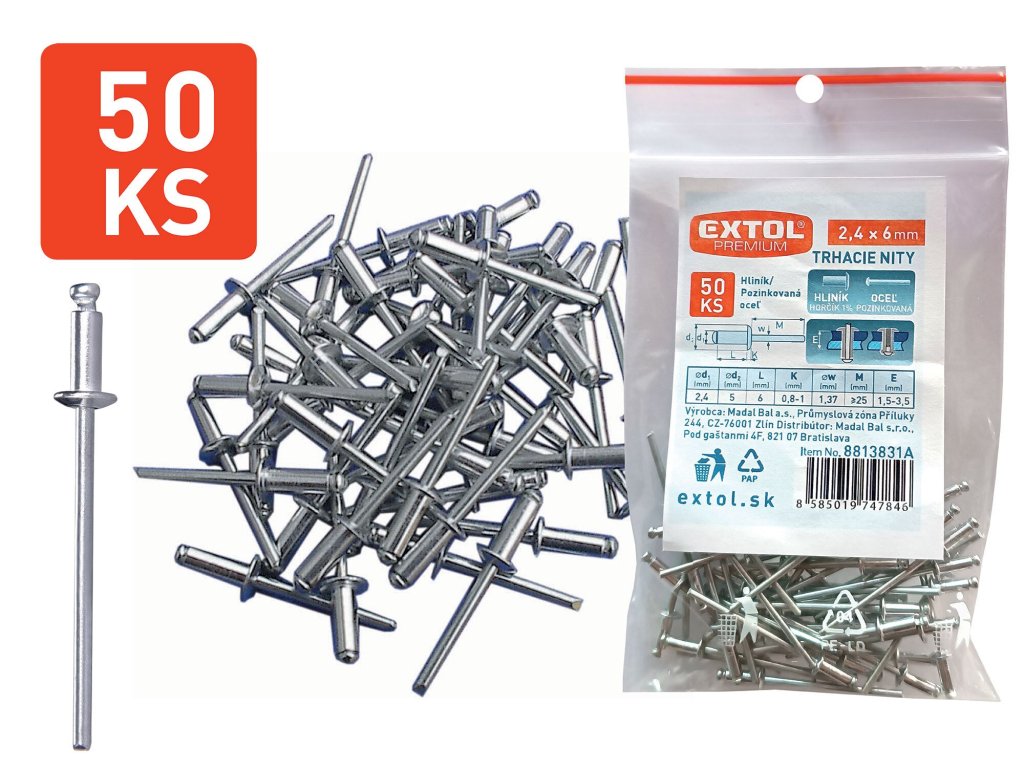 Nity trhacie hliníkové 2,4x6mm, 50ks, EXTOL PREMIUM