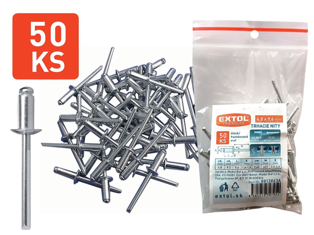 Nity trhacie hliníkové 4,8x9,6mm 50ks, EXTOL PREMIUM