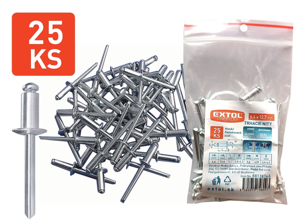 Nity trhacie hliníkové 6,4x12,7mm 25ks, EXTOL PREMIUM
